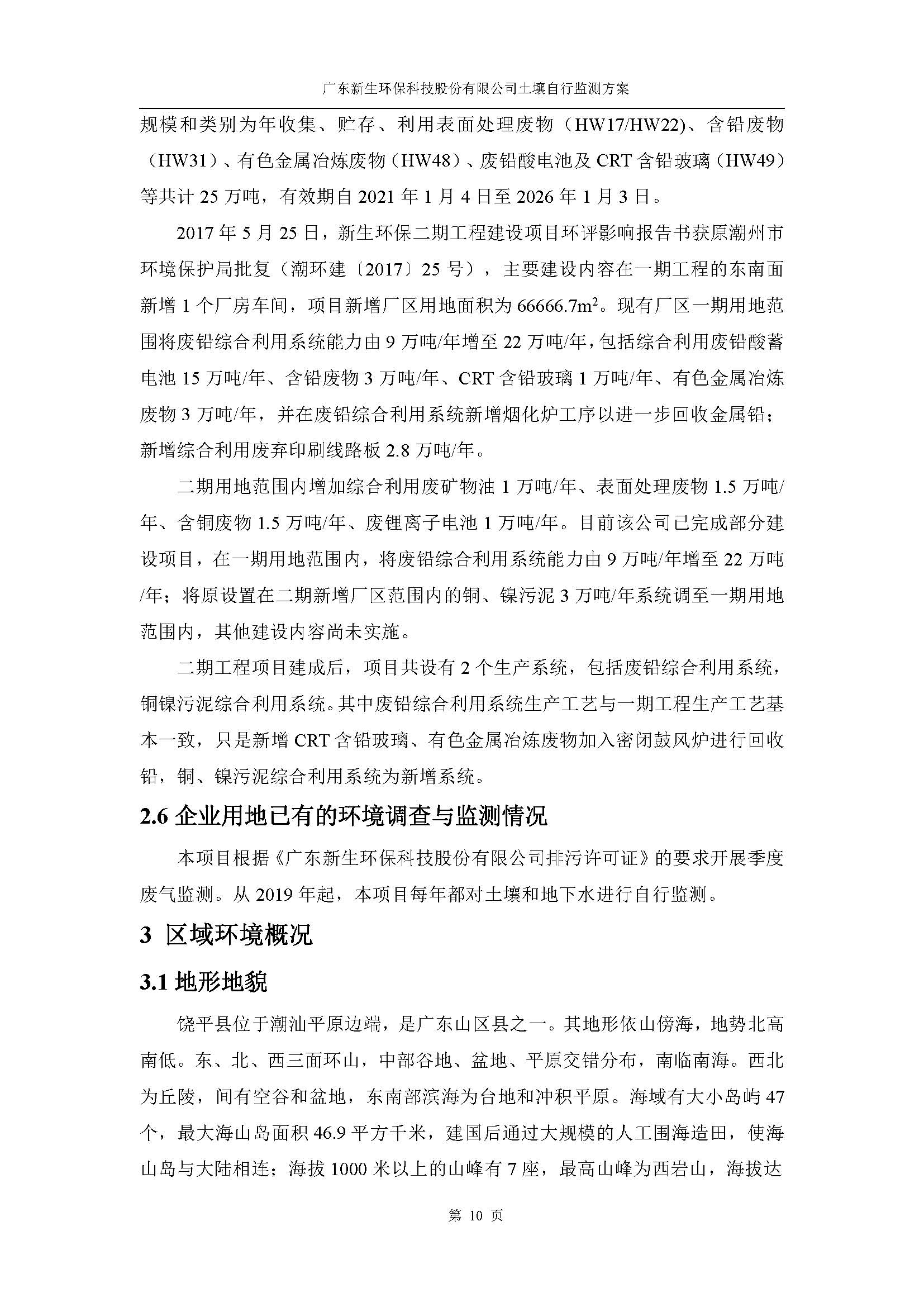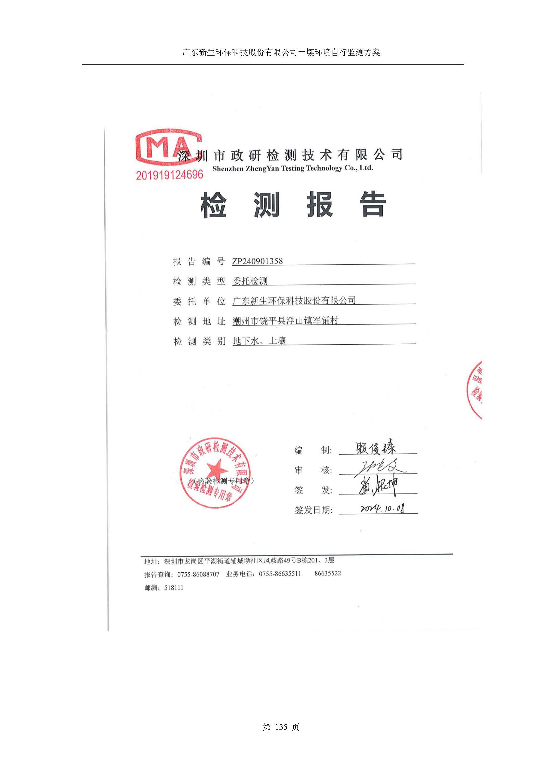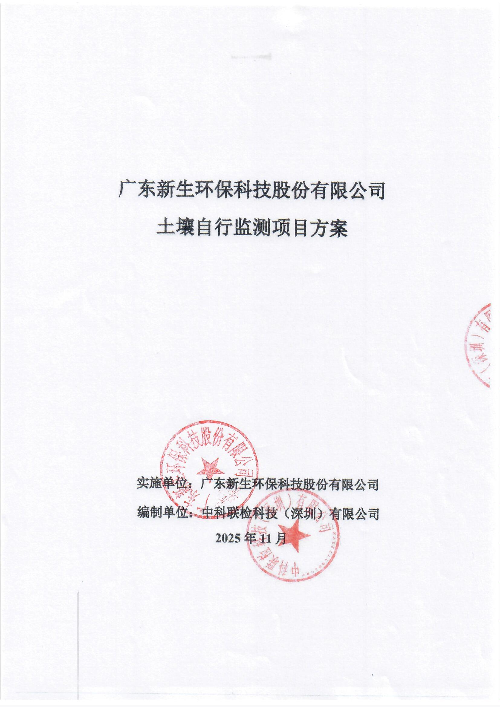 广东新生环保股份有限公司土壤环境自行监测方案-2025年度