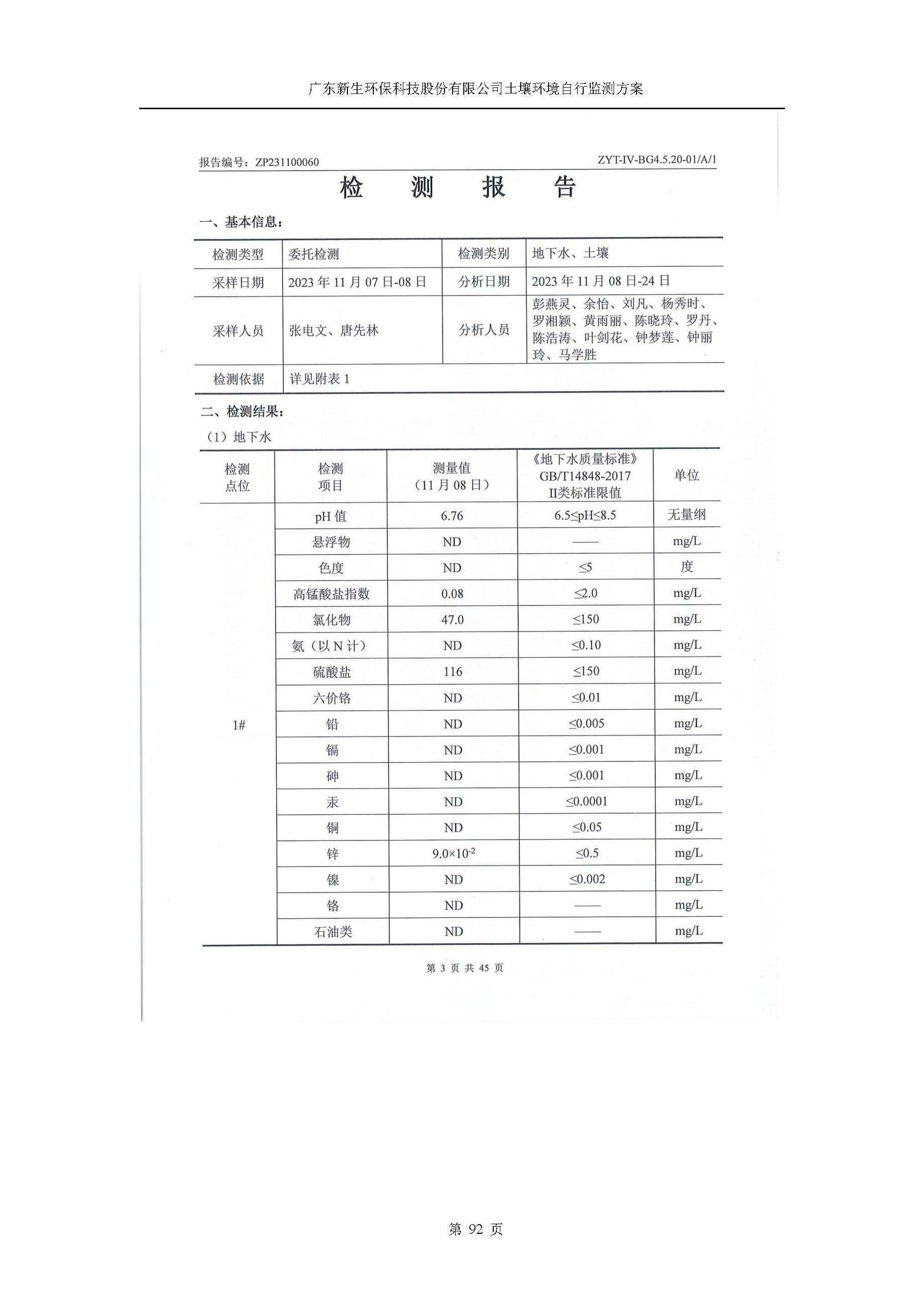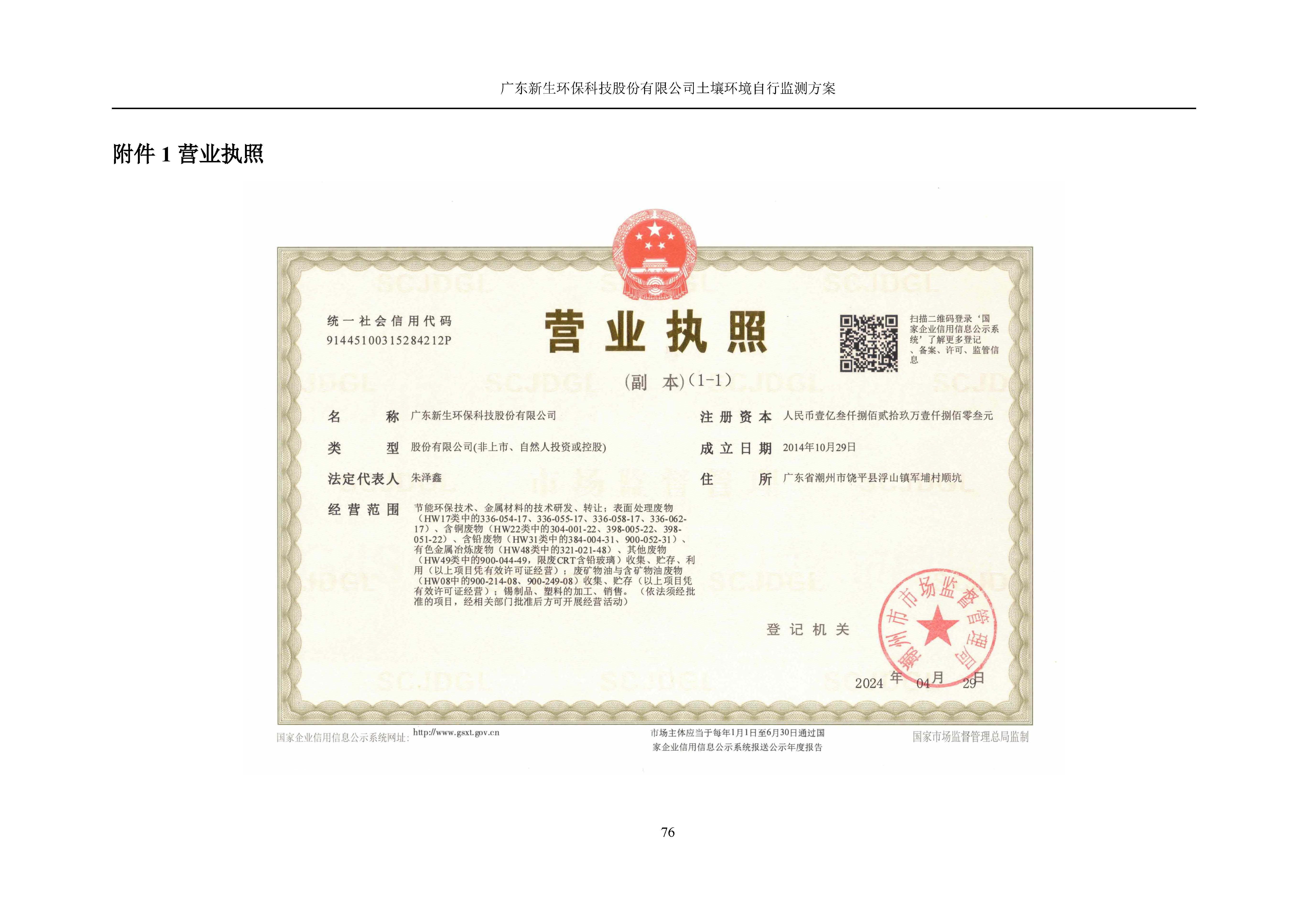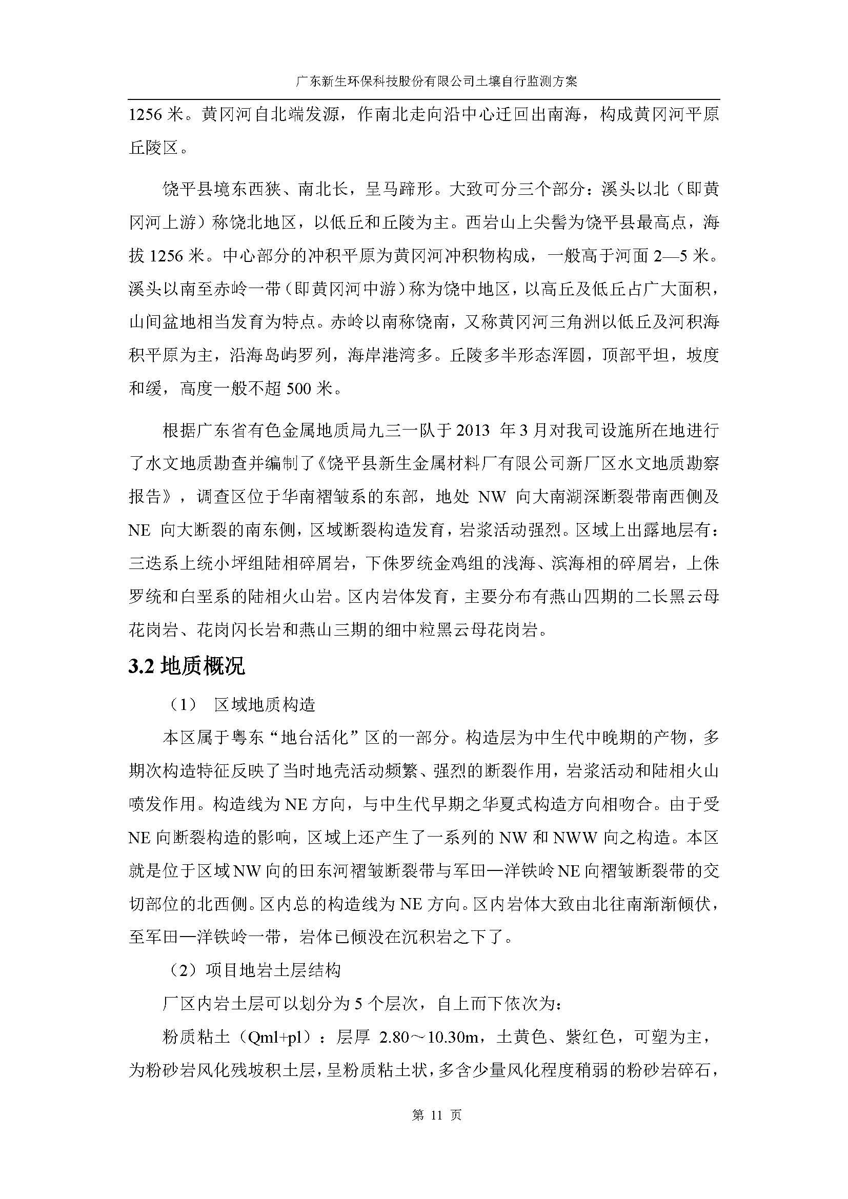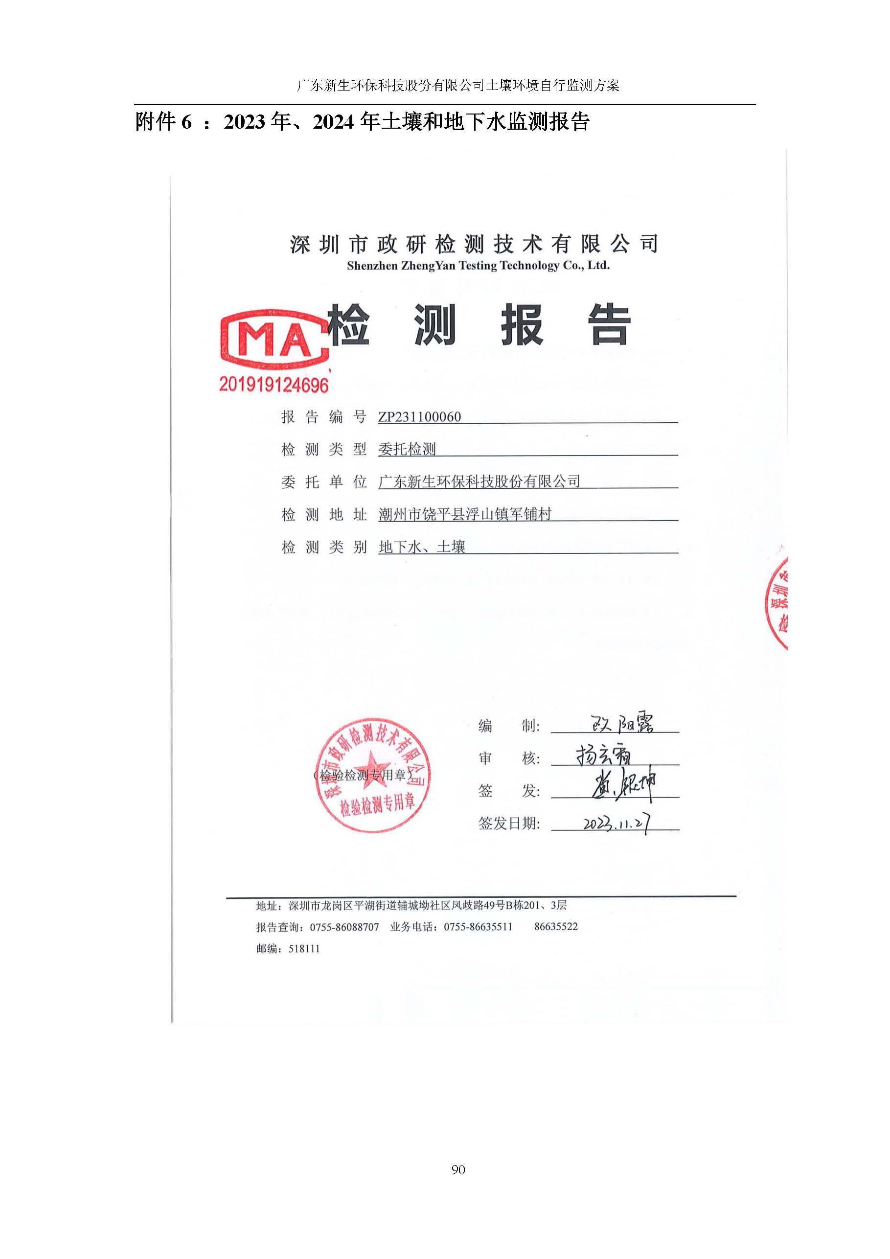 广东新生环保股份有限公司土壤环境自行监测方案-2025年度